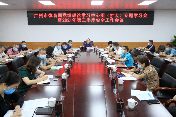 2021年6月25日上午,广州市体育局党组书记、局长欧阳资文主持召开党组理论学习中心组(扩大)专题学习会暨第三季度安全工作会议。会议主题:学习贯彻习近平总书记关于坚持总体国家安全观的重要论述和指示批示精神,以局系统的全面安全迎接建党100周年。
