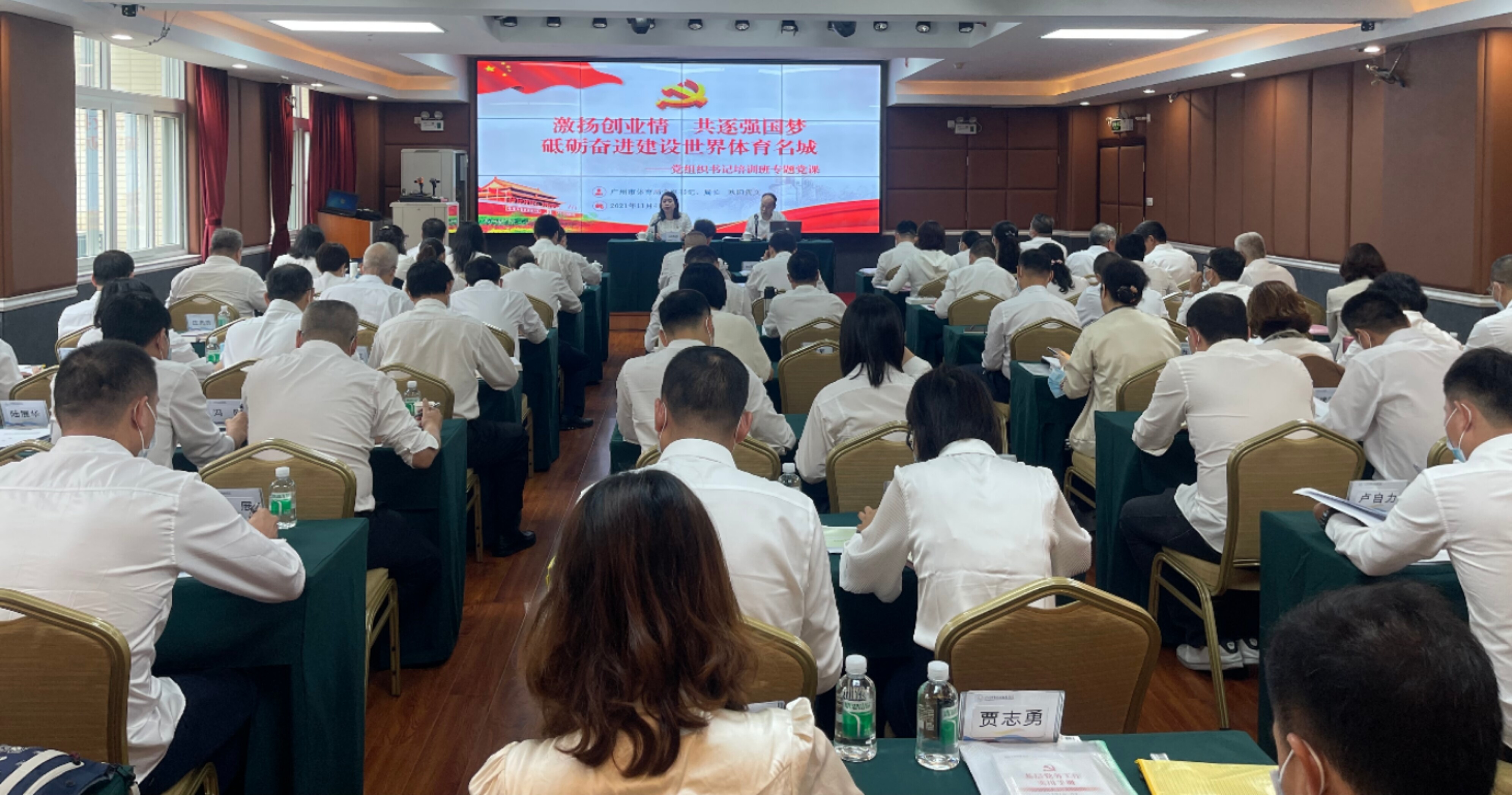 局党组书记、局长欧阳资文为培训人员讲授《激扬创业情 共逐强国梦 砥砺奋进建设世界体育名城》专题党课,深入学习党的历代领导人体育思想和论述,特别是习近平总书记关于体育强国思想的论述,详细介绍了广州体育的发展历程和取得的辉煌成就及广州建设世界体育名城的目标、任务,激励广大党员干部激情干事、大气做人、全面发展,推动广州体育事业高质量发展,全面提升广州城市影响力,为广州加快实现老城市新活力和“四个出新出彩”作出体育人的贡献。