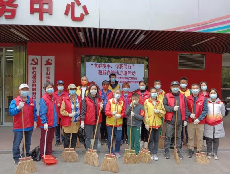 为营造干净整洁、文明有序、健康祥和的春节氛围,助力常态化疫情防控。近日,广东广州近万余名志愿者以一身“开年红”投身“迎新春”爱国卫生专项活动当中,走上街头,撸起袖子,拿起清洁用具,响应爱国卫生运动号召,以高涨的热情参加环境清扫、卫生死角清理等活动。从街头巷尾到市民广场,均可见志愿者身穿志愿者马甲清扫垃圾、清理杂物、派发病媒生物防制药物的忙碌身影;大家齐动手共同以实际行动呵护健康美丽家园,以千千万万个卫生健康“小环境”,筑牢常态化疫情防控“大防线”。