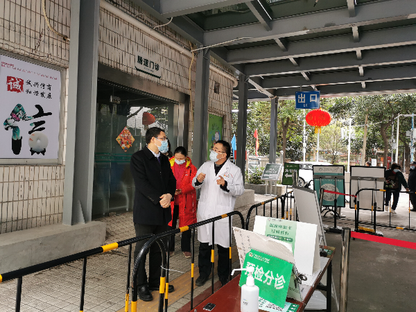 上图:市卫生健康委主任赖志鸿检查医疗机构预检分诊