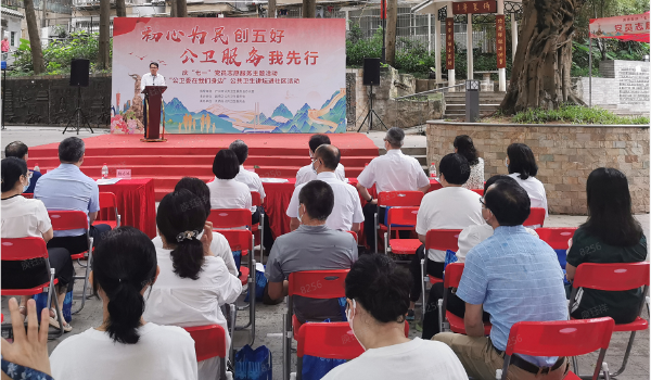 为进一步加大全市“五好”镇(街)公共卫生委员会试点创建工程影响力和传播力,强化宣传引导、营造浓厚氛围、普及健康知识,7月2日上午,在市公共卫生委员会办公室的指导下,越秀区公卫委主办、越秀区洪桥街公卫委承办了庆“七一”党员志愿服务主题活动暨“公卫委在我们身边”公共卫生讲坛进社区活动。市公卫委办公室副主任,市政府副秘书长,市卫生健康委党组书记、主任赖志鸿同志出席会议并讲话,市卫生健康委党组成员、副主任刘成勇参加活动。