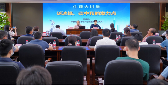 本期讲座邀请的嘉宾是中国城市科学研究会绿建委主任委员、教授级高工(绿色建筑)王有为,讲座主题是碳达峰、碳中和的发力点。王有为用形象的语言、生动的事例,从如何践行绿色低碳策略,探索建筑减碳之路等方面,为我们做了详细解读。在问答交流环节,与会代表积极提问,就建筑节能和碳达峰、碳中和等话题进行深入互动交流,现场气氛热烈。