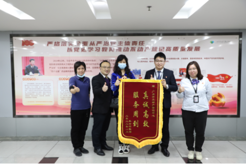 朱女士特意来到广州市不动产登记中心,“1+N服务太好了!给我们提供了大大的方便,必须好评!”还为此送上了一面锦旗!
