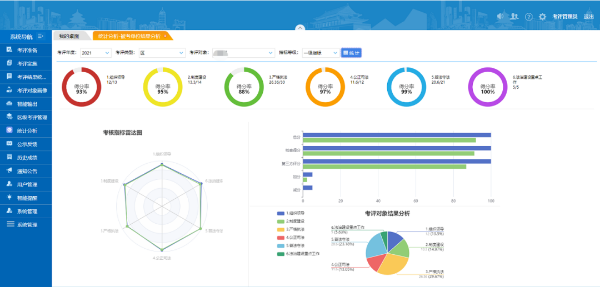 法治广州建设考评系统能够对全市考评情况进行智能分析,包括对考评对象以及考评指标“全域”数据的横向、纵向统计和比对分析,生成法治建设“诊疗报告和用户画像”,实现考评工作的大数据研判。指标统计分析能够直观、形象地反映考核指标体系现状与存在问题,借助数字化思维进一步优化考核指标体系,打造法治广州建设考评核心竞争力。通过智能化手段提升法治建设考评工作的客观性、全面性、精准性、便捷性、高效性和前瞻性,有助于更好地把握全市法治建设基本状况、探索法治建设的基本规律,同时督导各部门提前预警、及时发现和整改法治建设中存在的薄弱环节。