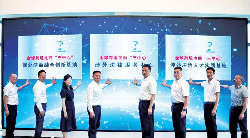 全球跨境电商“三中心”涉外法商融合创新基地、涉外法律服务中心、涉外法治人才实践基地揭牌。