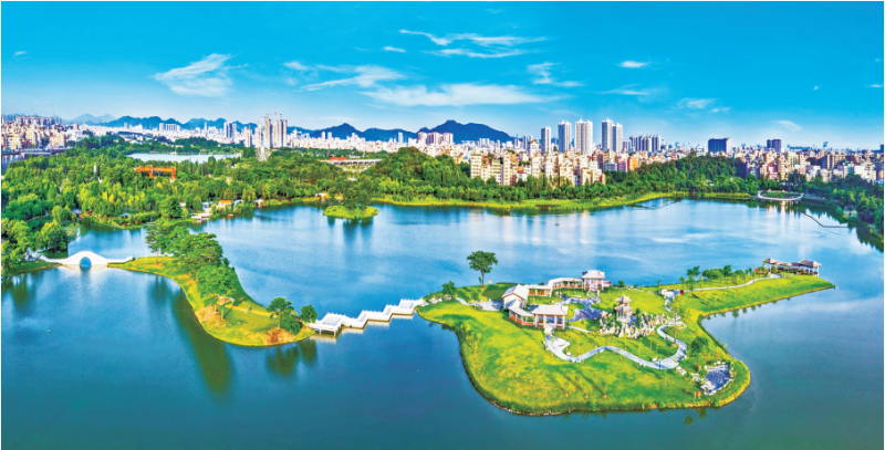 同时,白云区成功打造了“云山珠水”生态品牌,不断擦亮绿水青山底色,加速“两山两湖一江一河”生态价值转化。目前,通过统筹绿美白云生态建设,高标准实施城乡一体绿美家园建设等八大工程,白云区已经成功构建“生态公园-城市公园-社区公园-游园(口袋公园)”的四级城乡公园体系,推进景观绿化、立体绿化、道路沿线绿化等,增加城市绿色底蕴。截至2023年,建成各类公园84个,公园绿地500米服务半径覆盖率超88%,推进公园绿地与绿道、缓跑径串联成网,让群众在山清水秀、鸟语花香的城市环境中生产生活。