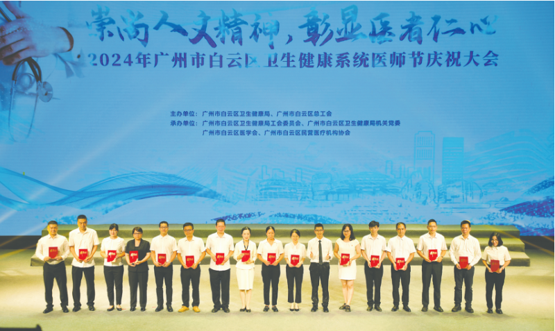 白云区举行2024年卫生健康系统医师节庆祝大会,表彰了73名“白云好医师”、13个“白云好医疗团队”。