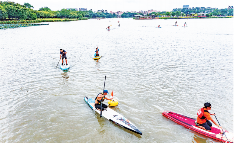 区文化广电旅游体育局方面表示,白云区拥有“两山两湖一江一河”自然景观,流溪河、珠江西航道、南湖、白云湖河湖交织,是发展水上运动的最佳区域之一。接下来,白云区将充分利用水域自然环境、地理位置等优势,积极开展桨板、桨板球、桨板定向、皮划艇等运动项目训练和普及推广,在具备条件的河道、湖泊建设水上运动配套设施,打造一批水上运动基地,为市民群众运动健身提供更多选择和更丰富的体验。同时将大力举办水上赛事活动,切实盘活“赛事经济”,以体育赛事为媒,充分释放市民体育消费需求、激发体育消费热情,积极培育“水+体育”新业态,助力广州建设世界体育名城。