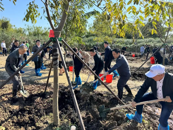 植树活动现场,大家三五一组,分工有序,干劲十足,有条不紊地完成铲土造坑、培土围堰、扶正树苗、提水浇灌等植树工序,处处洋溢着劳动的喜悦之情。经过大家的辛勤协作,现场栽下了200株花旗木,一株株新栽种的苗木迎风挺立,在春日里焕发出蓬勃生机,为绿美海珠生态建设又增添了一片新绿。