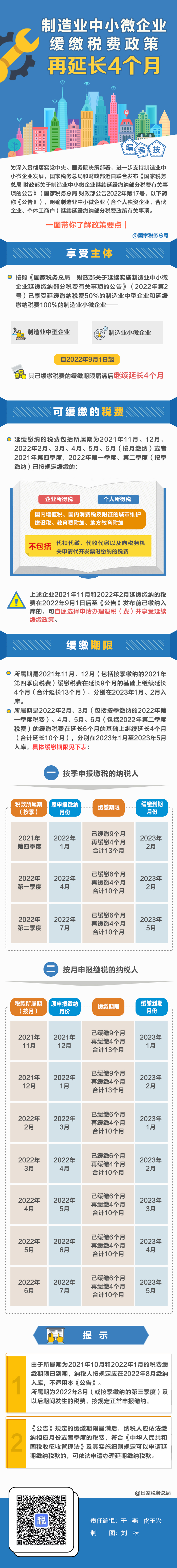 【一图读懂】@制造业中小微企业:缓缴税费政策再延长!一图读懂政策要点