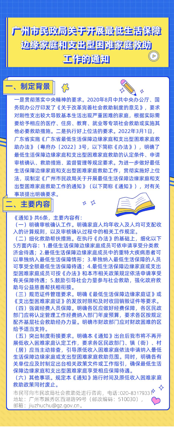 【一图读懂】广州市民政局关于开展最低生活保障边缘家庭和支出型困难家庭救助工作的通知