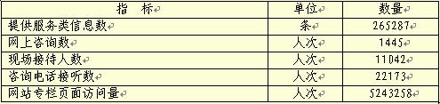 在主动公开的信息中与公众密切相关的重大事项方面的信息有2711条,内容包括通知公告信息283条,新闻动态信息2428条。新推出的工程招标、科技节能、造价咨询和质量安全栏目,为社会公众查询相关类别的信息提供了极大的方便,得到了社会公众的广泛赞扬和肯定。通过信息平台向企业发布本单位业务类信息短信265287条,提供行政许可和行政管理类信息、通知紧急事项等内容服务。