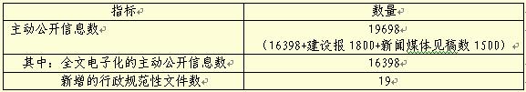 广州市城乡建设委员会2010年主动公开政府信息19698条。在主动公开的信息中,政策法规类的信息55条,主要内容为建设法律法规、规章和本委发布的规范性文件,其中法律法规2条,占总体的比例为3.6%;政府规章4条,占总体的比例为7.3%,规范性文件49条,占总体的比例为89%;规划计划类的信息12条,主要是介绍广州市城乡建设委员会各月份工作安排及工作进展情况;机构职能类信息45条,主要内容为本单位职责、组织架构、领导分工、联系方式及人事任免等信息;办事指南和资料下载信息111条,奖惩公示信息286条。行政许可和行政管理类案件总计6094条,其中建筑企业资质核准377条,施工许可信息103条,夜间施工83条,房地产企业年检521条,项目手册年检519条,初步设计审查123条,工程竣工验收备案信息102条,施工图审查备案175条。