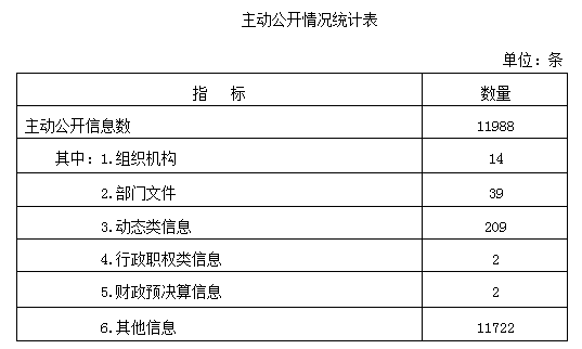 本局2017年全年主动公开政府信息11988条,其中:1.组织机构类信息14条;2.部门文件类(包括规章、规范性文件以及局发文件等)信息39条;3.动态类信息209条;4.行政职权类信息(包括行政审批、执法等)2条;5.财政预决算信息2条;6.其他信息11722条,该类信息主要通过广州市统计信息网“宏观经济数据查询”栏目公开以及新闻媒体公开。
