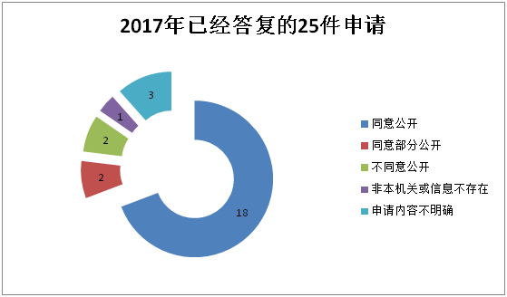 “同意公开”的18件,占总数的72%,主要涉及社会福利、社会组织登记管理等信息。