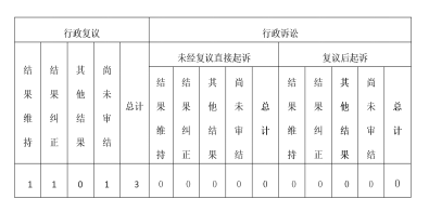 2019年度,市市场监管局信息公开类行政复议案件3宗。其中,维持具体行政行为的1宗,尚未结案1宗,被依法纠错的1宗。未有信息公开类行政诉讼案件。