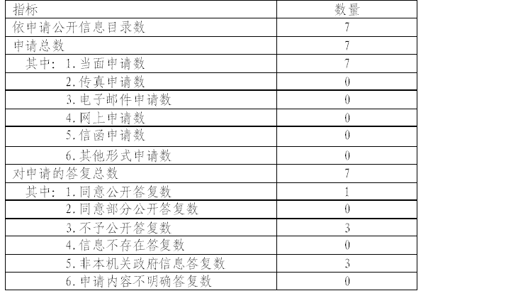 2011年,我区接收与受理的信息公开申请为7件,均为当面申请,回复率100%。