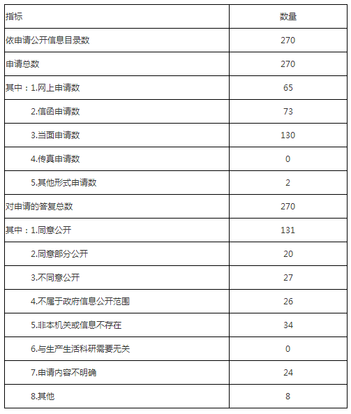 在已经答复的270件申请中,“同意公开”的131件,“同意部分公开”的20件,共占总数的55.9%;“不予公开的”27件,主要是申请的内容涉及国家秘密、商业秘密、个人隐私以及单位内部信息和过程性信息;“不属于政府信息公开范围”的26件;“非本机关或信息不存在”的34件,主要是因为要求获取的信息不存在或者不属于我区政府及区属各单位所掌握的信息,均已告知申请人与其他单位联系;“申请内容不明确”的24件,主要是要求获取的政府信息内容描述不清楚;“其他”的8件。