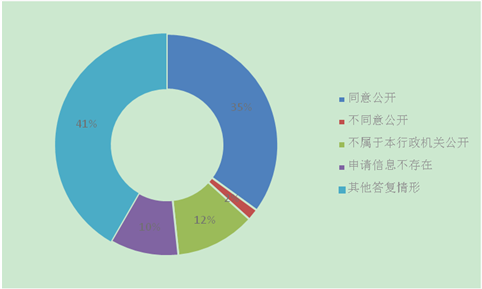 答复政府信息公开申请共60宗。其中,同意公开21宗,占35%;不同意公开1宗,占1%;不属于本行政机关公开7宗,占12%;申请信息不存在6宗,占10%;其他答复情形25宗,占42%。