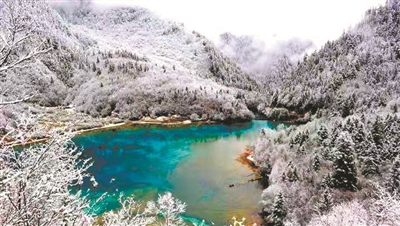 11月26日,九寨沟景区迎来了冬雪,下雪之后的九寨沟更加梦幻,碧蓝的海子与雪白的雪花相映衬,显得更加静谧美丽,整个景区也因此换上了冬景。