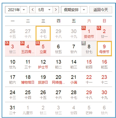 五一5天拼成9天假