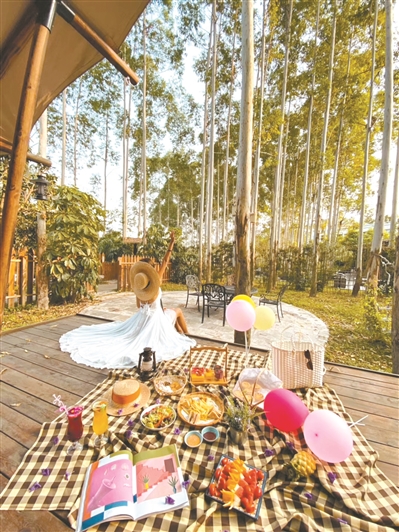 广州近郊就有不少营地可供选择。其中,“北迹露营1号”位于花都区芙滨路芙蓉嶂AAAA级自然风景区内,交通方便,各区域多以二十四节气命名,体现品牌“回归自然、回归历史、回归心灵”的理念,与阳光树林山峰湖泊亲密接触。现拥有豪华房车、猎户大床帐篷、豪华庭院帐篷、阳光草坪、露天舞台、露天游泳池、儿童游乐区、观景长廊等娱乐休闲设施。 由于产品突出私密性和开放空间,非常适合家庭。位于从化区的广州北纬23°8′森林营地,配套完善,近期野奢、房车和秘境房比较受欢迎。
