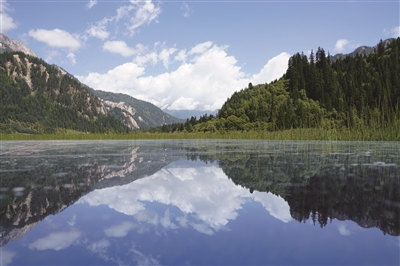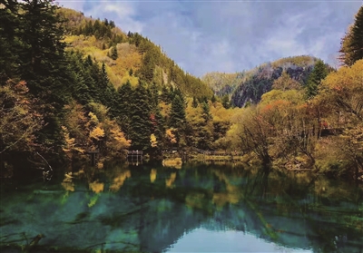 进入九月,九寨沟神仙池景区内的“瑶池”秋韵渐显。