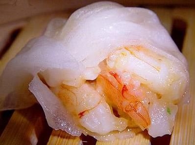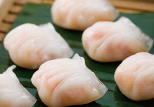 虾饺是广州的传统美点。其特点是:清鲜味美、爽滑而有汁。