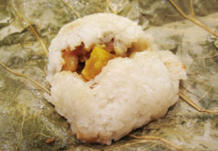 糯米鸡是广东点心的一种。制法是在糯米里面放入鸡肉、叉烧肉、咸蛋黄、冬菇等馅料。然后以荷叶包实放到蒸具蒸熟。