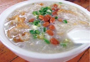 艇仔粥以新鲜的河虾或鱼片作配料,后来还增加了海蜇、炒花生仁、凉皮、葱花、姜等,吃前当即煮粥滚制,芳香扑鼻,热气腾腾,十分鲜甜。无论在街头食肆,或如白天鹅宾馆那样的五星级酒楼,都可品尝到这种广州特有的粥品。