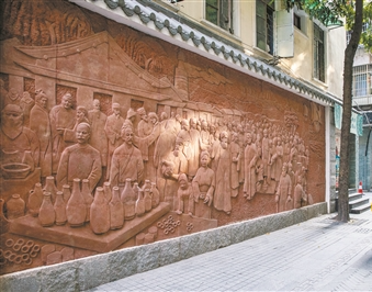 在光塔路进步里,有一面记录蕃坊景象的浮雕