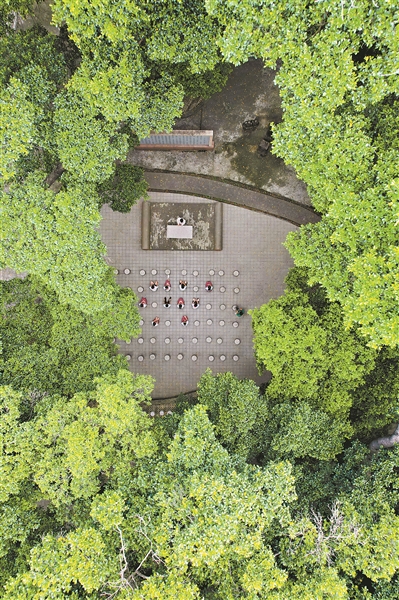 槎龙镇泰小学习善园的9株古榕合围出一个讲古的小空间。