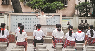 “槎龙村文化底蕴深厚,既是讲古泰斗张悦楷的家乡,又是粤语讲古传承人彭嘉志的家乡。作为广东省中华优秀传统文化传承学校、广州市非物质文化遗产传承基地,我们一定要将中华优秀传统文化传承下去,弘扬光大。”槎龙镇泰小学校长李春玲介绍,校内古榕树群构成的空间已成为学校开展尚善教育的文化传承地了。