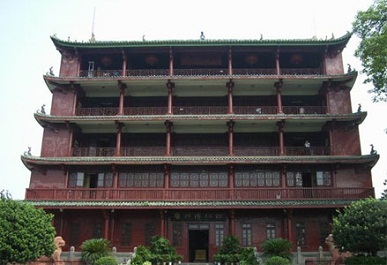 广州博物馆镇海楼展区位于风景秀丽的越秀公园,馆址为广州有名的一座古建筑——镇海楼。镇海楼曾名望海楼,因楼高五层,俗称“五层楼”。它始建于明代洪武十三年(1380年),时守将朱亮祖为拓展城区,合宋代三城为一,修城墙横跨城北越秀山,并在最高处建此城楼。登楼眺望,羊城景色尽收眼底。数百年来,诗人墨客咏叹之篇不绝。清以来一直为“羊城八景”之一。