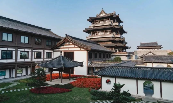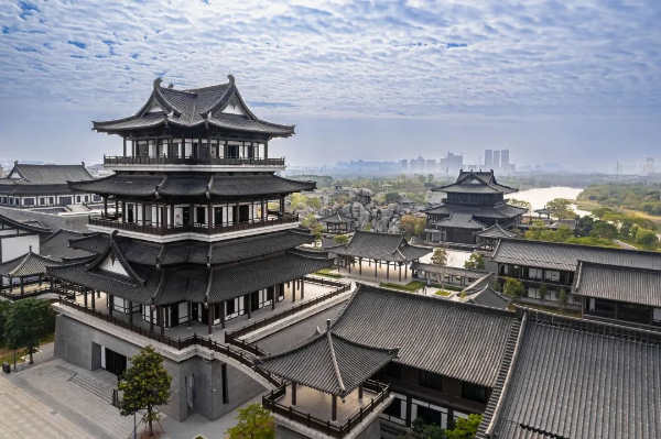 建筑总面积约4万平方米的公共文化中心,以中心阁为中轴,辅以西侧办公培训组团和东侧演艺排练组团,是新馆最核心的建筑体。