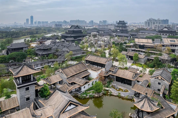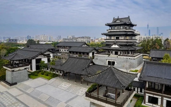 位于园区东南部的广绣园总建筑面积约0.18万平方米,建筑以广府典型的府宅园林为蓝本,借鉴江南园林的造园特色形成空间层次丰富的主庭水院。