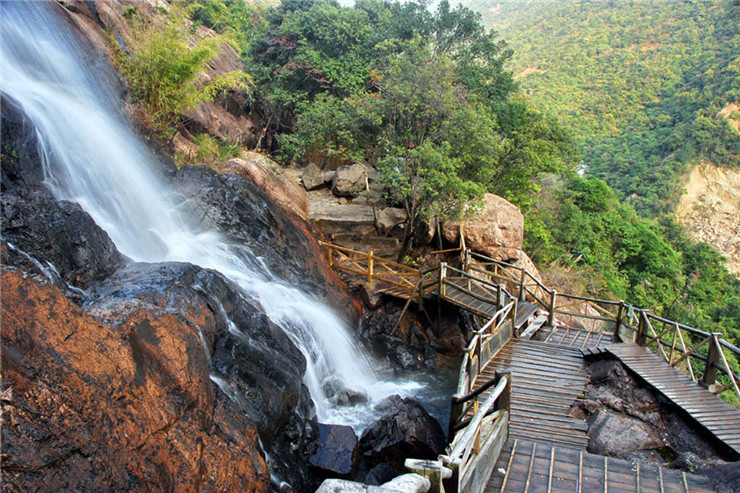 以中国大陆落差最大瀑布闻名的广州白水寨省级风景名胜区位于增城市派潭镇,被誉为“北回归线上的瑰丽翡翠”。它东临南昆山脉,西邻从化市温泉镇,南界增城市小楼镇,北边则紧接广州市白云区。白水寨园区内的自然生态资源非常丰富,竹影碧绿,古木参天,蝶舞蜂飞,尤其是面积达200平方公里的茂密水森林,更是夏季避暑纳凉的天然帐幕。