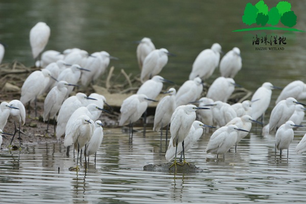 海珠湿地纵横交错的河网和幽深恬静的果林为鱼、鸟等生物营造了极佳的生境。湿地的果林里硕果累累,树梢上鸟鸣啾啾,河涌内鱼儿腾跃,基塘内群虾拥挤,沟堑中螃蜞相逐。鸟和鱼相伴甚欢,林与塘相益得彰。