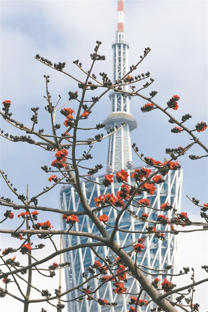 阳春三月,“却是南中春色别,满城都是木棉花”,漫步广州街头,中山纪念堂东北角,350余岁的“木棉王”傲然开放;陵园西路上,30余株木棉花红似火;增江东门桥畔,一棵树龄达131年的木棉满树繁花……