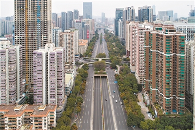 2月7日,广州大道中,车流量不多。