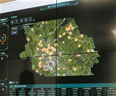 科技助力,数字农业监控平台上,显示着养殖鸽棚和光伏电板分布图