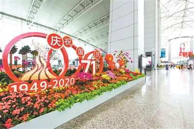 机场内布置各种花卉庆国庆