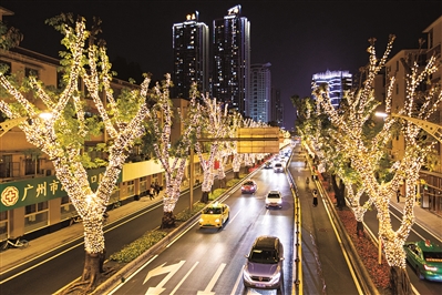 新春假期,天气晴暖。海珠区江南大道的木棉花提前盛开,一眼望去红红火火。而江南大道北的面貌亦焕然一新,白天各色鲜花绽放,晚上流光溢彩。