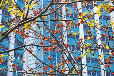 江南大道中,木棉花悄然绽放