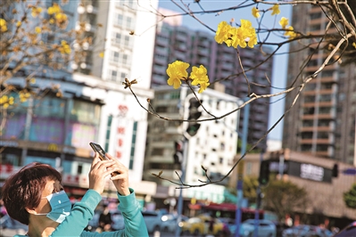 春节假期,海珠桥南的绿化景观、江南大道北婚纱街两侧的灯饰、市二宫地铁口的黄花风铃木,都成为广州热门打卡点,吸引不少市民来拍照拍视频,到处喜气洋洋,洋溢着欢声笑语。江南大道老城区焕发出蓬勃新活力。