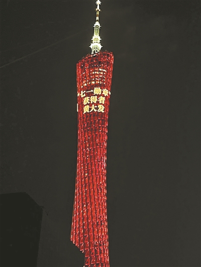 广州塔上播放的“七一勋章”获得者名单。