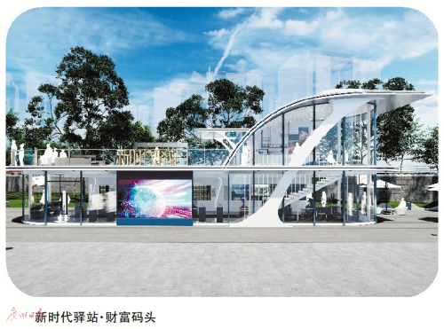 毗邻广州塔、地处财富码头东侧的“新时代驿站·财富码头”,外观设计以“红船”为理念,犹如一艘屹立珠江畔的新时代红船,象征着中国共产党人开天辟地、敢为人先的首创精神,坚定理想、百折不挠的奋斗精神,立党为公、忠诚为民的奉献精神。驿站以文化传承展示和便民休憩为主,室外摆放着雕塑大师许鸿飞的代表作,室内展览区首展推出“红邮寻踪 学史力行”红色邮展和“百年印记”全国篆刻大赛优秀作品展。非遗展示展销区首展以岭南非遗文化和跨珠江人行桥的文创产品为主,体现老城市新活力的文创传承。登上二楼户外观景平台的便民休憩区更可将广州滨水美景尽收眼底。