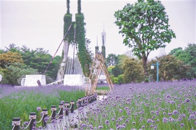 海珠湿地公园2万平方米的马鞭草盛放。大片紫色花海充满浪漫气息,吸引不少市民游客前往观赏