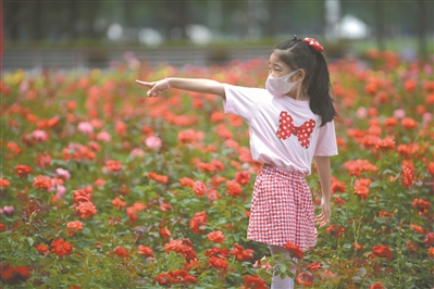 花城广场两侧的月季于5月初完成植株种植,如今已盛开。芳香的气味和艳丽的花朵吸引了很多街坊前去拍照