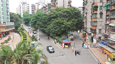 但在一年多前,这里却是另一副样子。华乐街道办事处副主任曾祥永告诉记者:“过去这里是一块边角绿地,由于榕树长得太大,把太阳都挡住了,下面的植物都长不好,我们就将这里围蔽起来。久而久之,这里成了收买佬的据点,不少人在绿地里堆放垃圾,加上噪声等问题,周边居民也有不少投诉。”曾祥永还表示,这个三角地块,居民非常密集,交通又复杂,过去靠近绿地这边没有人行道,行人乱穿马路、共享单车乱堆放等也是管理上的难题。